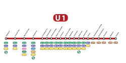 The U1 is a line on the Frankfurt U-Bahn. At the time of the line's inauguration in 1968, it ran from the south railway station to the Hauptwache and then continued along the Eschersheimer Landstrasse all the way up to Heddernheim and then continued to their terminus in Ginnheim.
