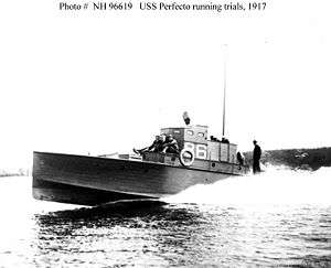 USS Perfecto (SP-86) was a motorboat that served in the United States Navy during World War I. She was built in 1917 by the Greenport Basin and Construction Company in Greenport, New York, and owned by J. J. Phelps of Hackensack, New Jersey. She was acquired by the Navy on 22 June 1917 and placed in service on 25 June 1917. During World War I, Perfecto served in the 5th Naval District, headquartered in Norfolk Navy Yard in Norfolk, Virginia. She patrolled the coastline for German U-boats. She was returned to her owner, Phelps, after the war ended on 18 February 1919.