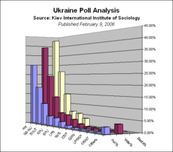 - ^ Razumkov Centre: 8 лютого 2006 Наміри голосування на виборах до Верховної Ради України та ідеологічні орієнтації громадян (Центр ім.О. Разумков) (Conducted 26–31 January 2006, published 8 February, Ukrainian only, edited)
