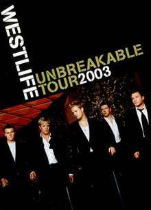 The Unbreakable Tour is a concert tour of the Irish pop band Westlife seen by 700,000 fans making £14,000,000 which covered the UK and Europe in 2003. There were 62 tour dates, including a few outside concerts including their coming home concerts in their home towns of Dublin and Sligo. This tour was the band's biggest production to date and featured a futuristic sci-fi stage complete with Andy Warhol inspired pop art projections, Las Vegas-style neon signs and the latest in intelligent lighting technology which cost £7 million. This was Brian McFadden's last concert tour as a member of the group.