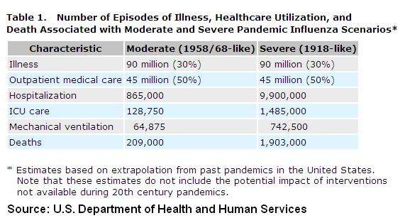 Pandemic influenza remains a serious threat. The U.S. Health and Human Services Department forecasts that if a lethal flu pandemic strikes, deaths could range from 209,000 to 1.9 million.[4]
