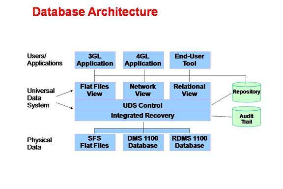 The OS 2200 database managers are all part of the Universal Data System (UDS). UDS provides a common control structure for multiple different data models. Flat files (sequential, multi-keyed indexed sequential – MSAM, and fixed-block),[1] network (DMS),[2] and relational (RDMS)[3] data models all share a common locking, recovery, and clustering mechanism. OS 2200 applications can use any mixtures of these data models along with the high-volume transaction file system[4] within the same program while retaining a single common recovery mechanism.[5]