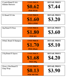 Unit price information in supermarkets