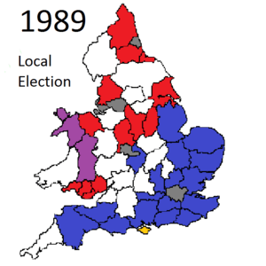 Local elections were held in the United Kingdom in 1989.[1][2] The Labour Party had the highest projected national vote share, but the Conservative Party, in power at Westminster, gained the most seats.