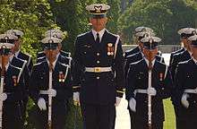 The U.S. Coast Guard Ceremonial Honor Guard provides – along with similar units from the U.S. Army, U.S. Navy, U.S. Marine Corps, and U.S. Air Force – marching platoons for state and official arrival ceremonies at the White House and the Pentagon, for the quadrennial presidential inaugural parade, for annual Independence Day observances in Washington, D.C., as well as for public events (recently including New Orleans Mardi Gras and the Coast Guard Festival in Grand Haven, Michigan). It also provides elements for military tattoos, change of command ceremonies, ship commissioning ceremonies, and its personnel serve as pallbearers, color guards, and firing parties at the funerals of Coast Guardsmen at Arlington National Cemetery.[3][4]