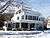 The Superintendent's quarters (1820) and the Commandant's quarters (1821) were constructed on the end of Jefferson Place near the intersection with Washington Road. During the 1800s, Jefferson Road extended further south through what is now North Area and a row of officers' quarters once lined the west side of the road south of the Superintendent's quarters, but those structures were all demolished to make room for the old North Barracks. The next oldest structures on post are the three sets of large duplex officers' quarters just off the northwest edge of the plain. These quarters (c1828), have been expanded over the years and have come to be known as Professor's Row, as they traditionally house the heads of the academic departments. The Dean's quarters were constructed in 1856 between the commandant's quarters and professor's row.[13] A complex of structures known as the "Ordnance Compound" was completed between 1837 and 1840. It consisted of three stone buildings with two towers encircled by a wall. The building that stands in the center of the compound, now the First Class Cadet's social club, was added in 1880.[18] The second academic building was demolished in 1891 and replaced on the same location by what was then known as the West Academic Building. This Richard Morris Hunt designed structure took four years to complete and served as the main academic hall until 1950, when it was converted into a barracks and renamed Pershing Barracks. The large house on the end of Professor's Row, known today as the "Beat Navy House" due to the "Beat Navy Sign" that hangs on its front porch, was built in 1875 and has been used as multiple officer's quarters since its construction.[15] In 1894, McKim, Mead, and White designed and began construction on the new memorial hall, later named Cullum Hall after General George W. Cullum, who started the Cullum Register of Graduates and donated the funds for the structure. Completed in 1898, Cullum Hall broke several architectural traditions. First its classical design and white marble construction clashed with the gray granite Gothic design of the other buildings on the plain. Second, it obstructed the eastern view of the Hudson River.[19] Started in 1900 and completed in 1903, the West Point Officer's Club also was of neo-classical design. However, budget cuts and the high cost of white marble resulted in the selection of an off-color white brick, a design that failed to inspire the imagination of the public at large and the academy leadership. These two structures are the only neo-classical designs left in the cadet area now that the old cadet chapel is moved to the cemetery.[20]