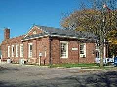 US Post Office-Painted Post is a historic post office building located at Painted Post in Steuben County, New York. It was designed in 1937 and built in 1937-1938 and is one of a number of post offices in New York State designed by the Office of the Supervising Architect of the Treasury Department, Louis A. Simon. It is a one story, three bay structure clad in red brick in the Colonial Revival style. The interior features a 1939 mural by Amy Jones titled "Recording the Victory" and depicting a Revolutionary War scene.[2]