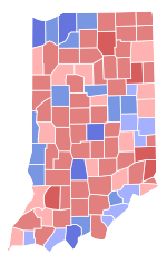 | U.S. Senate election results map. Blue denotes counties won by Donnelly. Red denotes those won by Mourdock. | |||||||||||||||||||||||||||||||