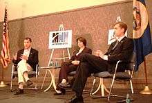 Candidates Mark Kennedy, Amy Klobuchar, and Robert Fitzgerald debate on November 5, 2006.