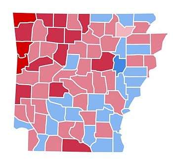 Arkansas weighed in for this election as 3% more Republican than the national average.