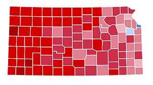 Kansas was won by Governor George W. Bush. He won all of the congressional districts and counties in the state, except for Douglas County and Wyandotte County. Gore won Douglas with just 45.8% of the vote. Nader also had his best performance by far in Douglas, where he got over 10% of the vote. Bush performed very well in the first district, which is the western and most rural part of the state.