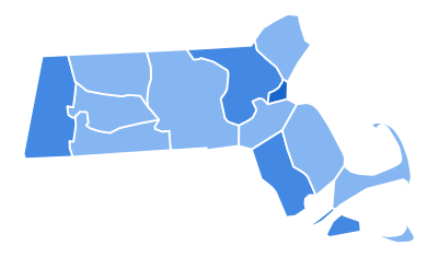 Massachusetts is one of the most reliable blue states in the nation: no Republican has won the state since 1984. The 2000 Presidential election featured Democratic United States Vice President Al Gore versus Republican Texas Governor George W. Bush. Despite Bush's tight victory nationwide, Gore handily won Massachusetts, with a 27% margin of victory against George W. Bush who did not actively campaign there. Gore won every county and congressional district.