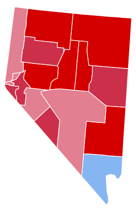 Nevada was won by Texas Governor George W. Bush, who won the state with 49.52% of the vote over Al Gore, who took 45.98%. Bush won every county except Clark County, which is home of Las Vegas. Bush also won Nevada's 1st congressional district, as Gore won Nevada's 2nd congressional district. Also, Ralph Nader got over 2% of the vote.[1]