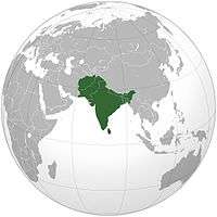 An orthographic projection map featuring the Mainland and Maritime nations of South Asia (highlighted in dark green)
