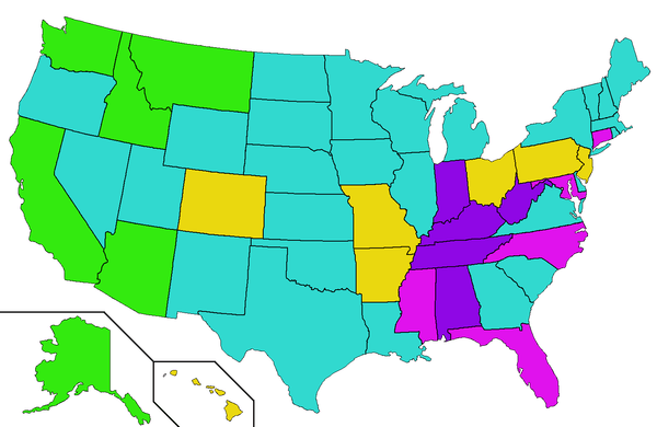 Based on projections of population growth, Northeastern and Midwestern states such as Pennsylvania, New York, Rhode Island, Ohio, Michigan, Illinois, and Minnesota may lose seats, while Western and Southern states such as California, Oregon, Arizona, Colorado, Texas, Florida, North Carolina, and Virginia may gain seats.[4] The Southern states of Alabama and West Virginia may also lose seats.[4]