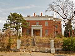 Upton, also known as the David Stewart Residence or Dammann Mansion, is a historic home located at Baltimore, Maryland, United States. It is a large brick Greek Revival mansion constructed about 1838 as the country residence of David Stewart (1800-1858), a prominent Baltimore attorney and politician. It is 2 1/2 stories high on a raised basement, three bays wide and two rooms deep, with a center-passage plan. In the late 1950s, a brick stair tower was constructed when the building was adapted for public school use.[2]