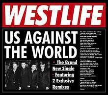 "Us Against the World" is a song by Irish boy band Westlife from their ninth studio album, Back Home (2008). The song was released as the album's second single on 3 March 2008.