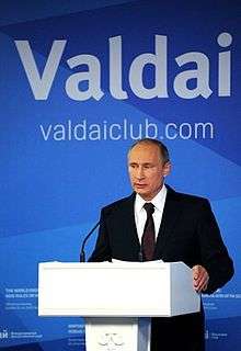 The Valdai speech of Vladimir Putin is a press-coined name for the speech that the Russian President Vladimir Putin delivered at the Valdai International Discussion Club XI session on 24 October 2014, in Sochi City.