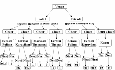 A set of well defined metric rules define the grammar for venba. Such rules have been proved to form a context-free grammar.[1]