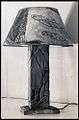 Lamp, carved wood, painted shade, c.1960