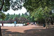 The park has an extension of 38.9 hectares,[1] located in the far west of the Coyoacán borough next to Ciudad Universitaria .[2] From its initial creation by Miguel Angel de Quevedo, the area has operated primarily as a tree nursery, growing seedlings for reforestation projects. The nursery operation produces about one million seedlings per year, which are mostly planted in and around Mexico City.[2][3] Most of the park’s area is planted with trees, and it is considered to be one of Mexico City’s “lungs.” Other areas are dedicated to seed beds, orchards and greenhouses.[2][4] The area used to be part of a ranch called Panzacola, and a few remains of this can still be seen such as the ruins of a small rectangular chapel and a well, with a date marking of November 18, 1918.[2]