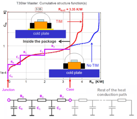 MicReD T3Ster Structure Functions of a package Rthjc thermal resistance for a power LED device with the transient dual interface method of JESD 51-14, and the dynamic compact thermal modeling of the main heat-flow path of the package.