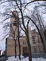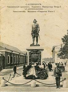 Vyborgski district has preserved a certain tangible memory of the nation's success in the Great Northern War. The day of the decisive Battle of Poltava in the south (in what is now Ukraine), on which Russians had their first major success in the war, fell on the feast day of Saint Sampson the Hospitable[8] (June 27, 1709), and a grand cathedral in his honour was built on the road to Vyborg. Completed during the reign of Anna of Russia, Sampsoniyevskiy Sobor (Saint Sampson's Cathedral) is now a museum - a branch of the ring of four museum churches with the head office at Saint Isaac's Cathedral.[9] Saint Sampson's Cathedral features among the few church buildings preserved from the first half of the 18th century - from the city's first decades of existence.[10] It replaced an earlier wooden church, whose construction started in 1709 on the Tsar's order, and which was consecrated the following year. The cathedral is interesting architecturally for its admixture of Old Russian (pre-Peter) forms with then-current elements of West European trends, forming together "Anna's baroque" and is also known for its unique carved wooden iconostasis from that time.[10] For the bicentennial of the Battle of Poltava the ground floor of the bell tower was decorated by memorial plaques citing Peter's selfless encouraging words to his army on the day.[10] Opposite the building was placed Peter the Great's statue by Mark Antokolsky, taken away during the Soviet years and restored on its place in the early 21st century.