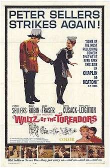 Waltz of the Toreadors is a 1962 film directed by John Guillermin and based on the play of the same name by Jean Anouilh with the location changed from France to England. It stars Peter Sellers and Dany Robin.[1] It was nominated for a BAFTA Award in 1963.[2]
