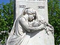 Detail from the war memorial at Roye. An allegory of a victorious France.