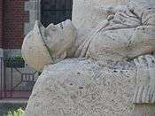 Rosières-en-Santerre Monument aux morts Rosières-en-Santerre Somme The sculptor, Auguste Carvin, was chosen to carrying out the sculptural work on the Rosières-en-Santerre memorial. The monument was inaugurated on 1 November 1922. The central figure of the monument is a poilu ("poilu debout dit le sacrifice") standing on a pedestal, his face looking upwards, his hand on his chest and two bas-reliefs below show the mother and wife of a dead soldier kneeling before his grave; the mother holds a bouquet of roses. On the other side of the central pedestal are a further two bas-reliefs. One of these reliefs features the tomb of a soldier. In the background are a village and can make out the bell-tower. On the right a sower turns towards the tomb as though in hommage- he is perhaps sowing the seeds of the future.[33]