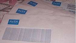- 1 2 Rossi, Antonio (2008-02-07). "AySA licita obras de cloaca y agua por $ 2.200 millones" (in Spanish). El Clarín Newspaper. Retrieved 2008-02-14.
