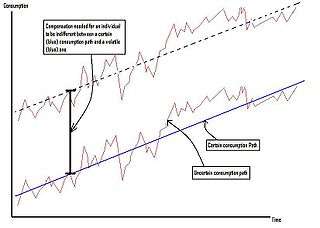 If we consider two consumption paths, each with the same trend and the same initial level of consumption – and as a result same level of consumption per period on average – but with different levels of volatility, then, according to economic theory, the less volatile consumption path will be preferred to the more volatile one. This is due to Risk aversion on part of individual agents. One way to calculate how costly this greater volatility is in terms of individual (or, under some restrictive conditions, social) welfare is to ask what percentage of her annual average consumption would an individual be willing to sacrifice in order to eliminate this volatility entirely. Another way to express this is by asking how much an individual with a smooth consumption path would have to be compensated in terms of average consumption in order to accept the volatile path instead of the one without the volatility. The resulting amount of compensation, expressed as a percentage of average annual consumption, is the cost of the fluctuations calculated by Lucas. It is a function of people's degree of risk aversion and of the magnitude of the fluctuations which are to be eliminated, as measured by the standard deviation of the natural log of consumption.[6]
