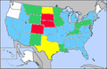 The following maps show the progress of human cases of West Nile across the United States. States are colored according to the percentage of all U.S. West Nile cases they represented in that year. Zero percent (no cases) is colored white; less than 1% is blue; between 1% and 5% is green; between 5% and 10% is yellow, and greater than 10% of cases in a year is red.