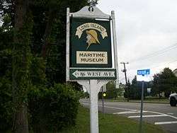 Sign for the Long Island Maritime Museum, West Sayville's primary attraction | |