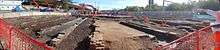 Another station on the Hammersmith & City line, Royal Oak, was also served by the GWR but their services were withdrawn in 1934[9] Today the first stop out of Paddington is at Acton Main Line. Industrial archaeologists have found the remains of buildings including a broad gauge train shed for Brunel's original lines, a turntable, and engine sheds in excavations east of the station as part of the land clearance work for the Crossrail project.[10]