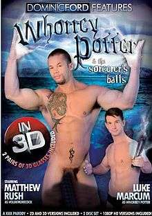 Whorrey Potter and the Sorcerer's Balls is a magic themed gay pornographic film produced by Dominic Ford.[1] The film is a parody of Harry Potter and the Sorcerer's Stone and was released in 3D technology,[2] being considered by some the most innovative product of the new technology since Avatar.[3][4] The film was nominated for twelve Grabby Awards, including Best Videography, Best Screenplay, Best Director, Best Solo (Luke Marcum), and Best Supporting Actor (Matthew Rush).[5]