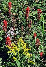 ![]() A late-summer grouping - paintbrush, aster, and goldenrod |