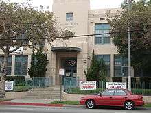 St. Gregory Nazianzen is a Catholic church owned by the Archdiocese of Los Angeles since 1923. The current cast concrete building and adjacent school were dedicated in 1938, but the area around the intersection of Norton and 9th Street had been operating as a church and school for fifteen years prior.[12][13]
