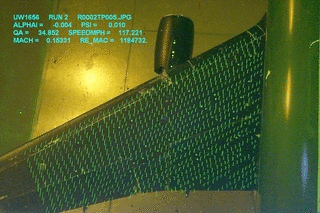 High-speed cameras are also required when the subject of the test is itself moving at high speed, such as an airplane propeller. The camera can capture stop-motion images of how the blade cuts through the particulate streams and how vortices are generated along the trailing edges of the moving blade.