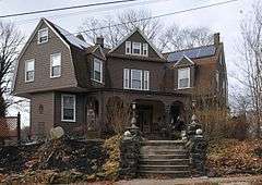 Windsor Hills Historic District is a national historic district in Baltimore, Maryland, United States. It is a cohesive residential suburb defined by rolling topography, winding, picturesque streets, stone garden walls, walks and private alley ways, early-20th century garden apartments, duplexes, and freestanding residences. Structures are predominantly of frame construction with locally quarried stone foundations. Windsor Hills developed over a period from about 1895 through 1929. The dominant styles include Shingle cottages, Dutch Colonial Revival houses, Foursquares, and Craftsman Bungalows.[2]