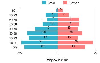 Figure 1. Population pyramid of village in 2002 — by age group and sex[1]