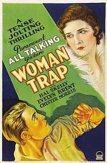Woman Trap is a 1929 American drama film directed by William A. Wellman and starring Evelyn Brent.[1] This action thriller was Wellman's second sound picture. Woman Trap is focused in a four cornered love between captain Hal Skelly (Clarence Wilson), Kitty Evans(Evelyn Brent) and his good for nothing brother Ray Malone (Chester Morris).