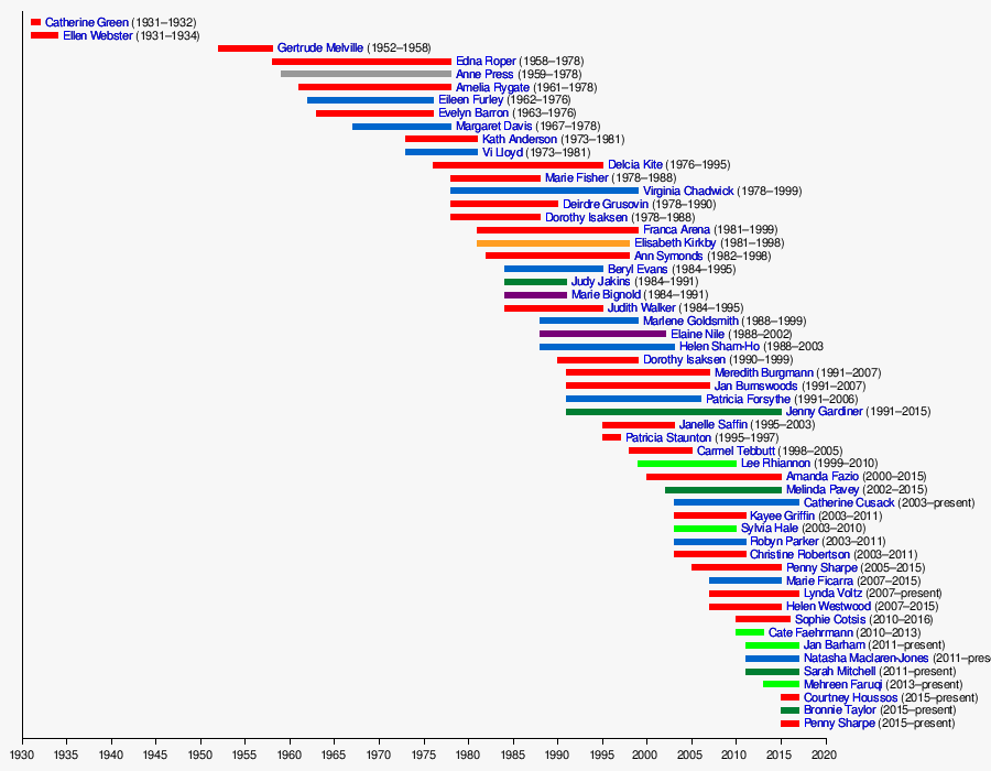 | Elaine Nile | Call to Australia/CDP | 19 March 1988 – 27 August 2002 |