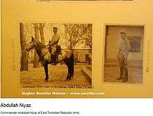 - 1 2 3 4 Andrew D. W. Forbes (1986). Warlords and Muslims in Chinese Central Asia: A Political History of Republican Sinkiang 1911-1949. Cambridge, England: CUP Archive. p. 144. ISBN 0-521-25514-7. Retrieved 2010-06-28.