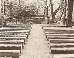 The inspiration for the founding of Camp Fitch, according to the camp's 25th anniversary publication, sprang from the "need of the city boy for a vacation in the out-of-doors under Christian leadership".[22] Today, Fitch's mission reflects the traditional goal of the YMCA: "helping children grow in spirit, mind and body".[23] While campers and staff of many creeds regularly attend camp year round, Christian education and leadership are still built into the core of the camp's mission. Camp staff are expected to "lead by example" by acting in a Christian manner at all times. To encourage this, it provides a Christian Leadership Conference once a year for YCA staff and volunteers.[24] Camp Fitch has set aside several locations on its grounds to help facilitate the spiritual portion of its mission including two outdoor chapels, one indoor chapel, and reflection points for both the Girls' and Boys' camps.[25]
