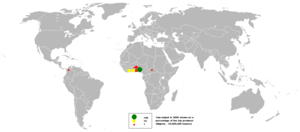 Nigeria is by far the world’s largest producer of yams, accounting for over 70–76 percent of the world production. According to the Food and Agricultural Organization report, in 1985, Nigeria produced 18.3 million tonnes of yam from 1.5 million hectares, representing 73.8 percent of total yam production in Africa.[1] According to 2008 figures, yam production in Nigeria has nearly doubled since 1985, with Nigeria producing 35.017 million metric tonnes with value equivalent of US$5.654 billion.[2][3] In perspective, the world's second and third largest producers of yams, Côte d'Ivoire and Ghana, only produced 6.9 and 4.8 million tonnes of yams in 2008 respectively. According to the International Institute of Tropical Agriculture, Nigeria accounted for about 70 percent of the world production amounting to 17 million tonnes from land area 2,837,000 hectares under yam cultivation.[4][5]