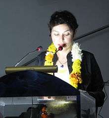 Yeşim Ağaoğlu (born January 21, 1966 in Istanbul, Turkey) is a multidisciplinary artist and a poet who works with various mediums, especially concentrating on installation, photography and video.[1] Her family comes from the city of Shusha in the Karabagh region of Azerbaijan. The most important thing for her in art is being interactive. She works on poetry (language) and art relationships, gender and feminism issues, architectural elements and political subjects. Since 1995 Agaoglu has produced nine poetry books that have made her famous as a women poet in the literature scene of Turkey.[2]