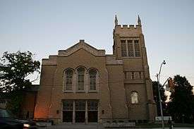Yorkminster Park Baptist Church is the largest Baptist church in Canada, built 1926-8 by the architectural firm George, Moorhouse and King, and is named after the 10th century York Minster in York, England. It is located in Toronto's Deer Park neighbourhood at 1585 Yonge Street, the northeast corner of Yonge and Heath Streets.