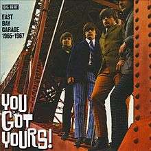 You Got Yours! East Bay Garage 1965-1967 is a compilation album featuring American garage rock bands that were active in the San Francisco Bay area between 1965 and 1967. It was released on September 18, 2007 on Big Beat Records and is the twenty-third installment of the Nuggets from the Golden State album series.[1] Generally overshadowed by the garage scenes located in Los Angeles and San Jose, the San Francisco scene was uniquely influenced by the surplus of folk rock, which would eventually develop into psychedelic rock. For the most part, the groups presented on You Got Yours! do not exemplify the teenage-angst and rawness associated with the garage rock genre, but rather display a level of professionalism not expected from an adolescent band.[2]