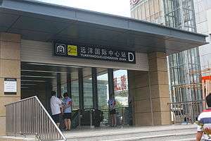 Yuanyangguojizhongxin Station (Chinese: 远洋国际中心站), literally Yuanyang International Center Station in English, is a station of Line 2 western section of the Tianjin Metro. It started operations on 1 July 2012.[1]
